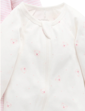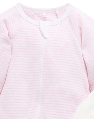 2 Piece Zip Growsuit - Pale Pink Stripe/ Bear