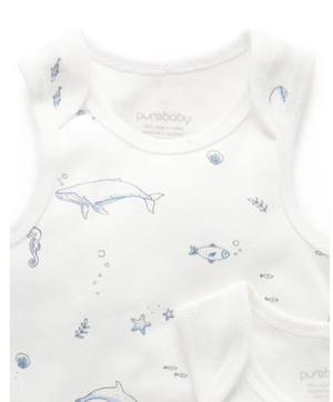 Two pack singlet bodysuit for practical all year round layering. The all in one style ensures the stomach and back stay covered. A necessary all seasons style for all newborns to wear as an individual piece or layered under cardigans and pants.