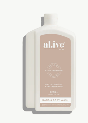 Each refill is designed to refill the 500ml al.ive body Hand & Body Wash bottle twice. With a controlled-flow spout for mess-free pouring, compact shape for easy storage, and full kerbside recyclability, it offers a practical, premium solution while extending the life of the product you already love.