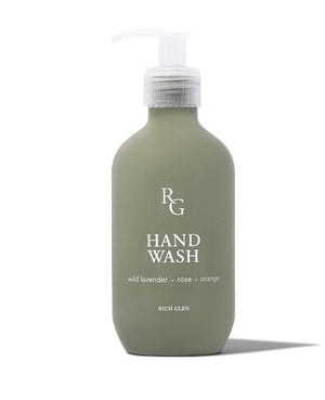 Purified water, Rich Glen first cold pressed (saponified) extra virgin olive oil, RG Blend of essential oil blend of lavender, rose & orange and xanthan gum