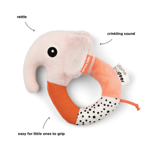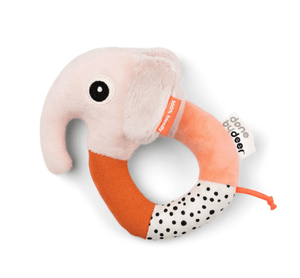 This sensory ring rattle with Elphee is great entertainment for your baby. The ring makes it easy for little hands to hold the rattle and the funny sounds will keep your baby entertained.