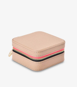 The Jewellery Case is the perfect companion for keeping your treasures organised and protected, whether at home or on the go. With thoughtful compartments for rings and hooks and slips for earrings or necklaces, it makes storing and accessing your favourite pieces effortless. Compact in size and crafted from premium PU with a fun two-tone zipper.