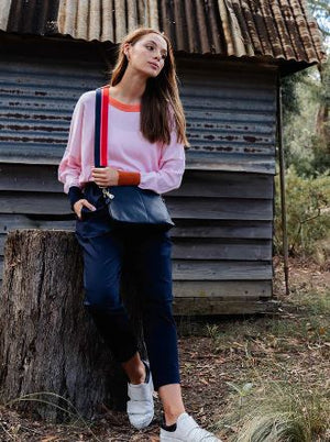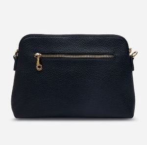 The Elms+King Burbank Crossbody Large offers the functionality and hands-free ease of the compact best-selling Burbank, just with added capacity. Made from premium polyurethane with 14-karat light gold-plated hardware, the Burbank offers a secure top zipper, our signature blue& white gingham lining and ample depth for all your essentials. The crossbody features two strap options, one wide cotton webbing strap in our exclusive custom stripe, adjustable to 140cm and a second narrow PU strap, also adjustable to 140cm.